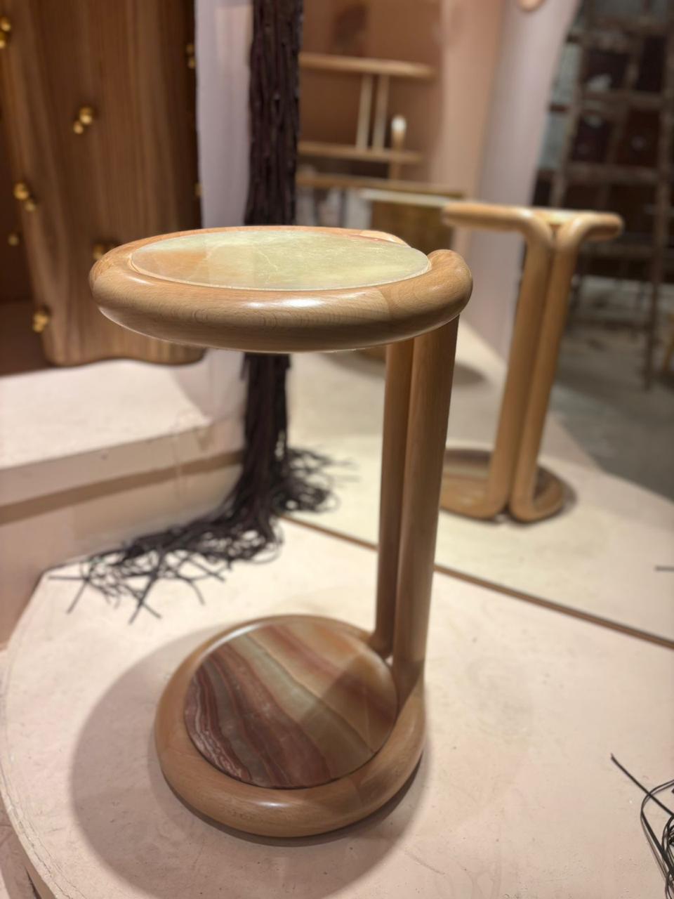 Info: This sculptural side table features an elegant onyx top and base connected by a single rounded leg that evokes the look of stacked bangles, giving it a feminine jewelry-like allure. A graceful and captivating accent for any space.