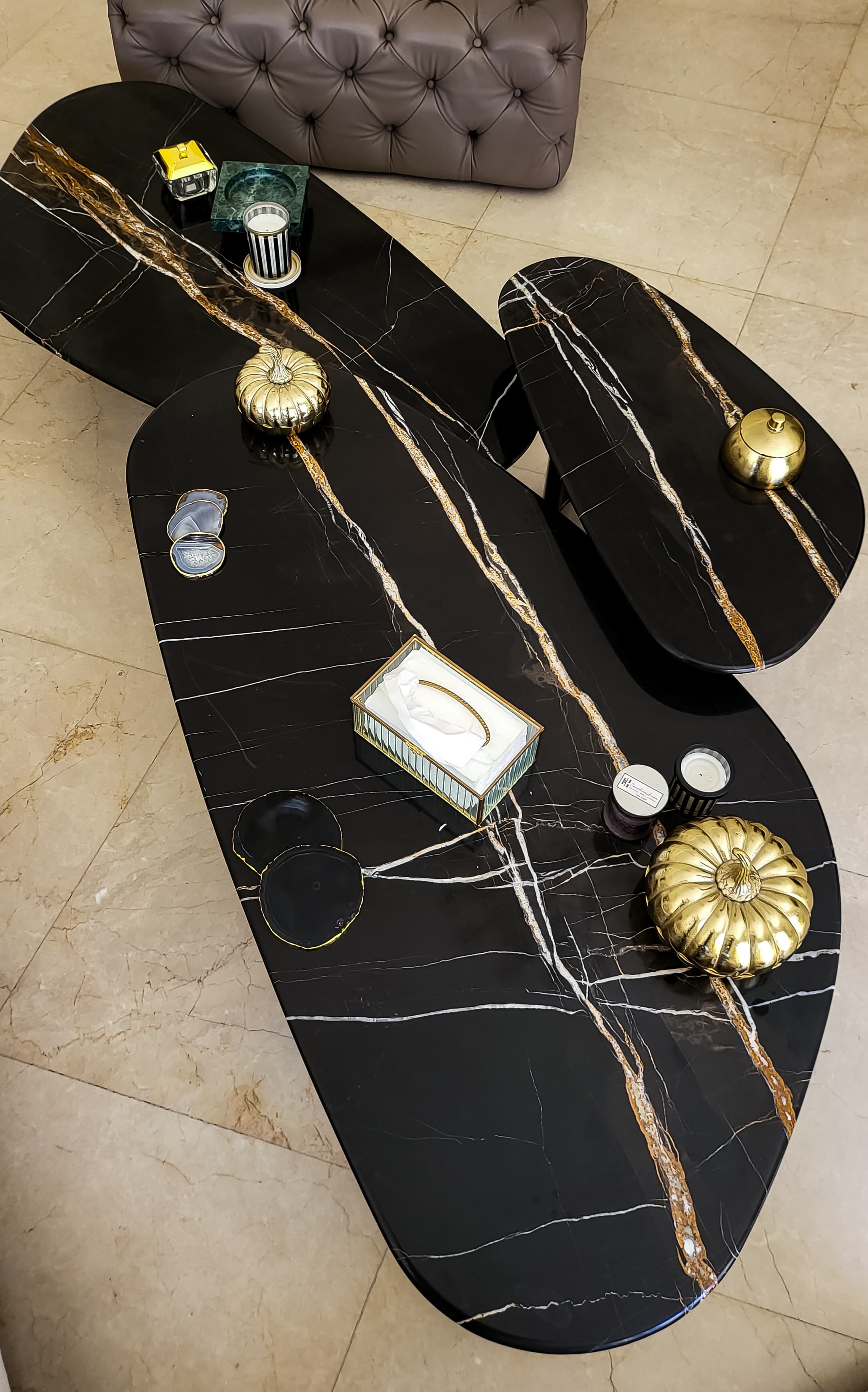 Info: A unique set of 3 luxury coffee tables
