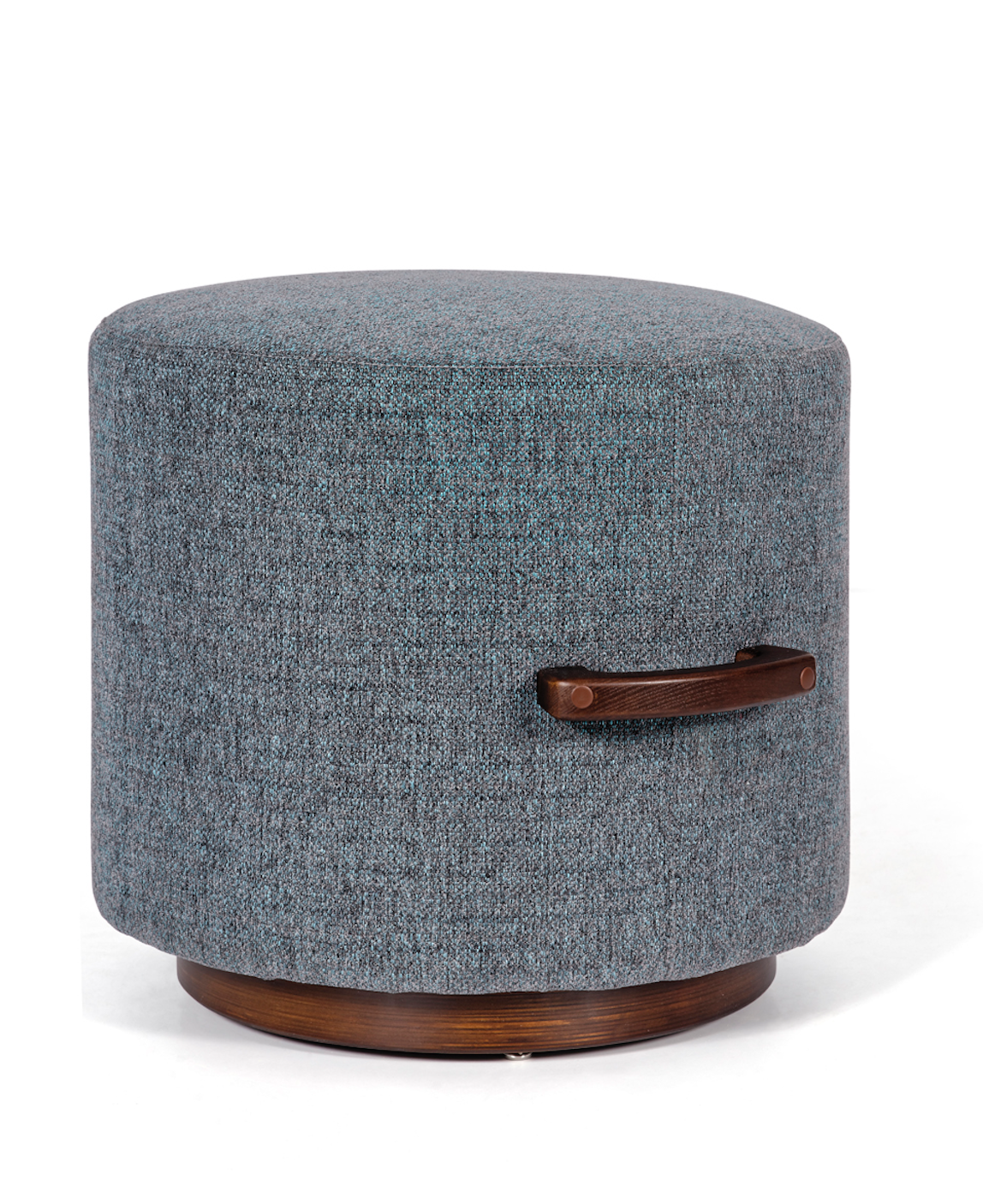 A simple round pouf with a basic cylindrical shape, the wooden base along with the wooden arms add character and give a chance to mix different finishes to make it stand out. The structure of the pouf is carefully engineered to make it sturdy yet light in weight at the same time. This simple furniture piece offers so much possibilities within any interior context.