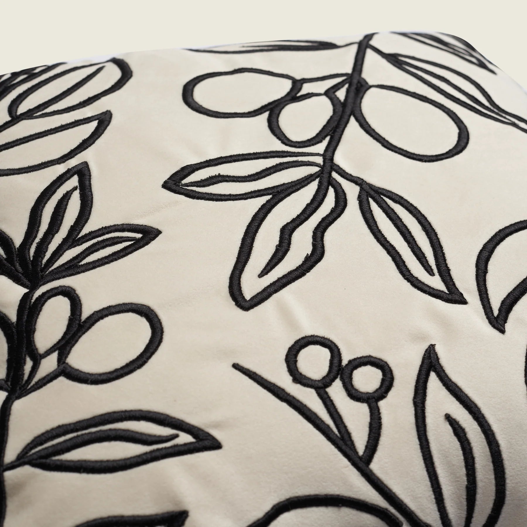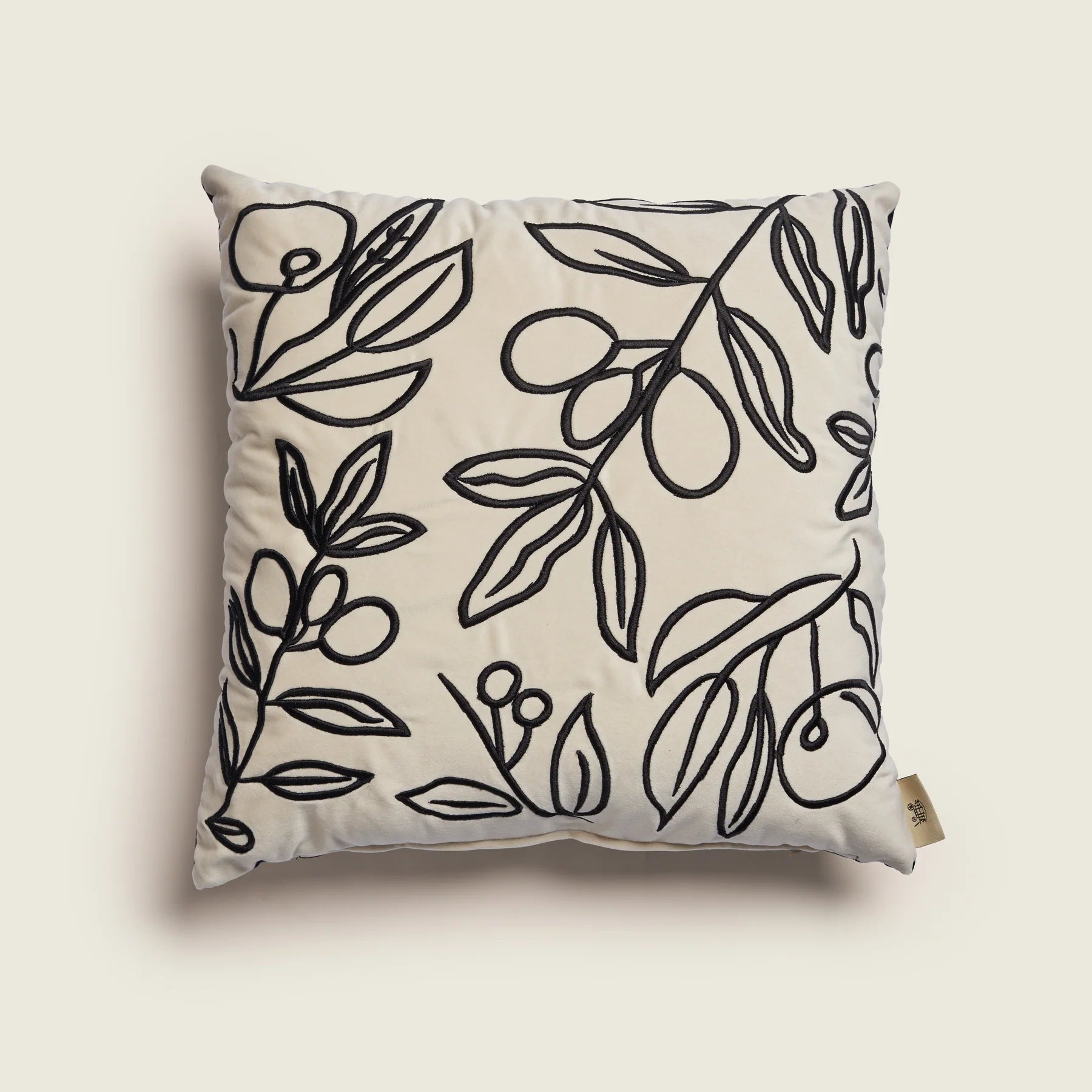 Info: Add a touch of winter to your space with the "Cherry Tree" cushion. The unique design, featuring an embroidered sketch of a cherry tree branch on a soft, off-white velvet background, creates a captivating and eye-catching piece.