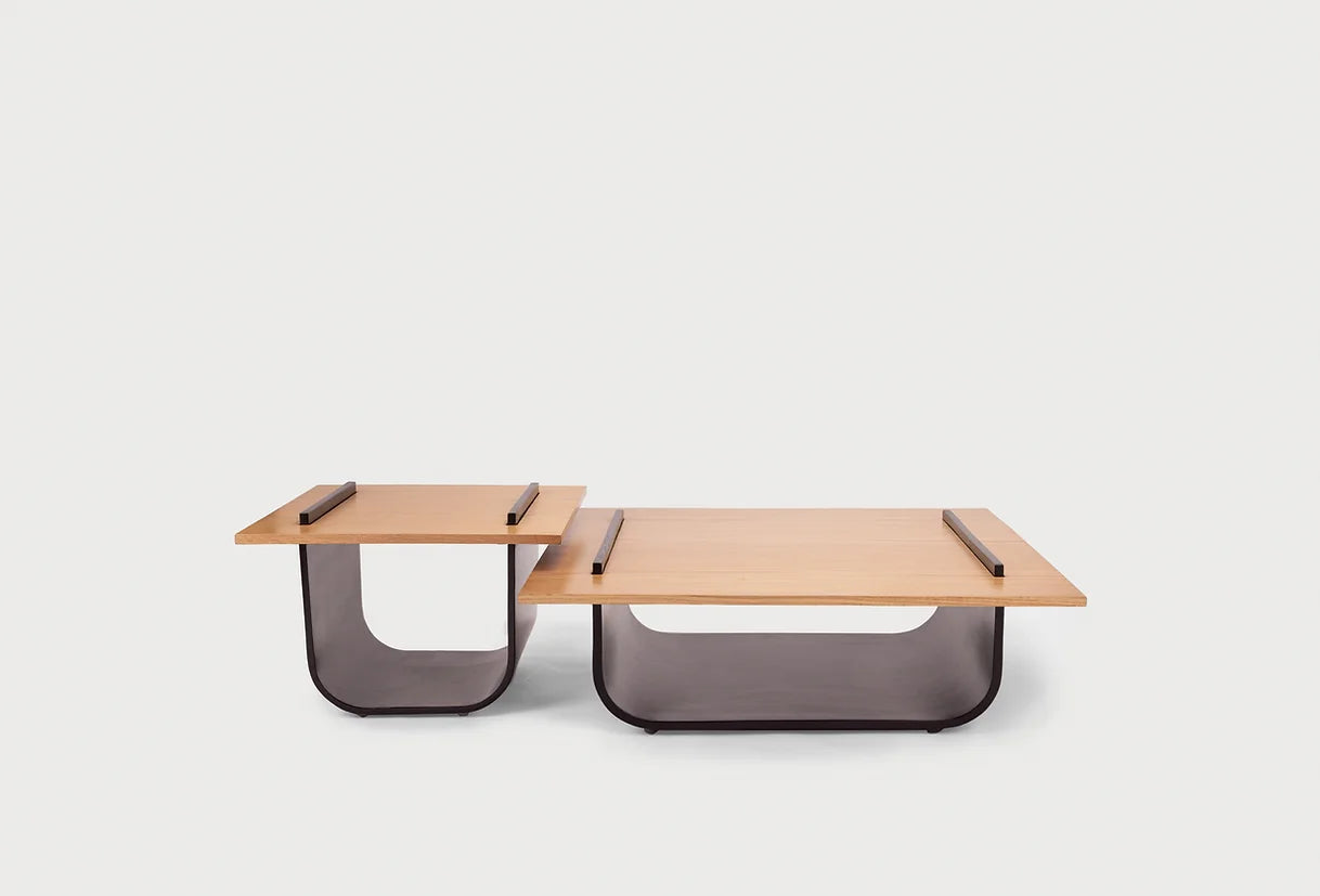 Info: The Vent Coffee Table Set – a versatile addition to your living space. This set includes two overlapping wood tables, featuring sleek black U-shaped structures and square oak veneer table tops. Beyond their elegant design, the base of each table offers practical storage for books, magazines, and more, making them both functional and stylish pieces for your home. Upgrade your living room with the Vent Coffee Table Set and bring both form and function into focus.