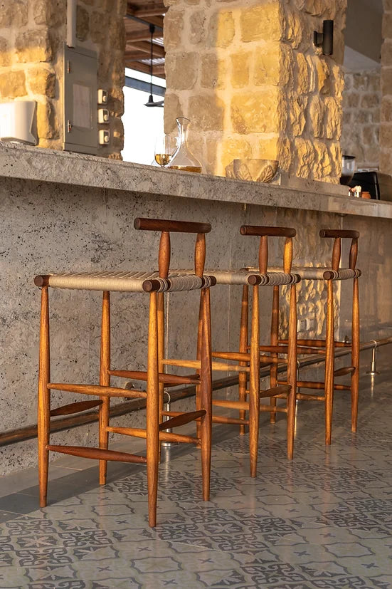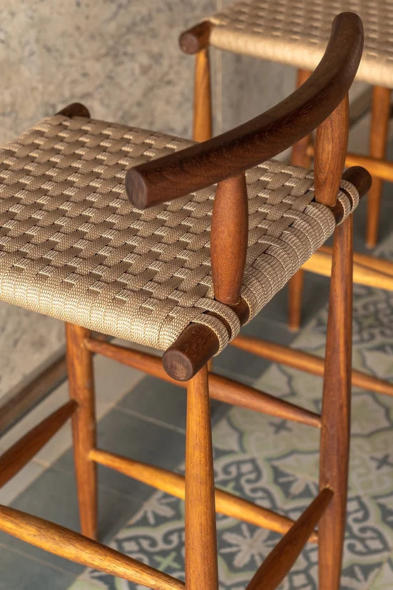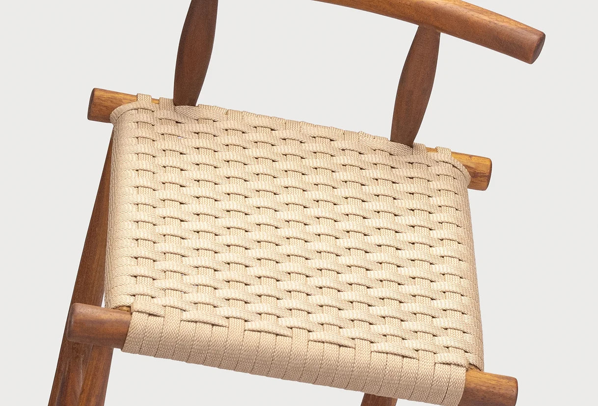 A barstool that seamlessly combines outdoor charm with artisanal craftsmanship. Its seat is hand-knitted with durable rope, adding a touch of handmade elegance to your outdoor space. Crafted from teak wood, this barstool not only exudes natural beauty but is also designed to withstand the elements. Elevate your outdoor bar area with the Crook Barstool, where craftsmanship and durability converge in perfect harmony.