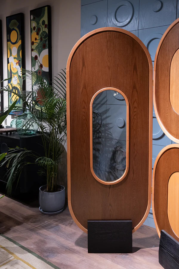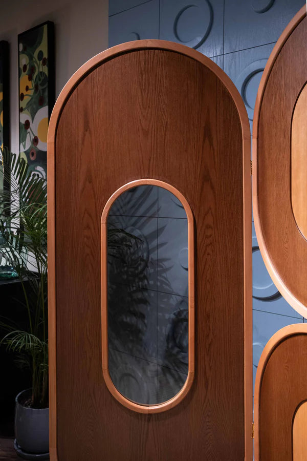 Eira Paravan is the best looking way to separate a room. With big planes of walnut and contrasting frames of natural beech wood, and an integration of a glass window, all work together to separate zones while keeping them weaved together.
