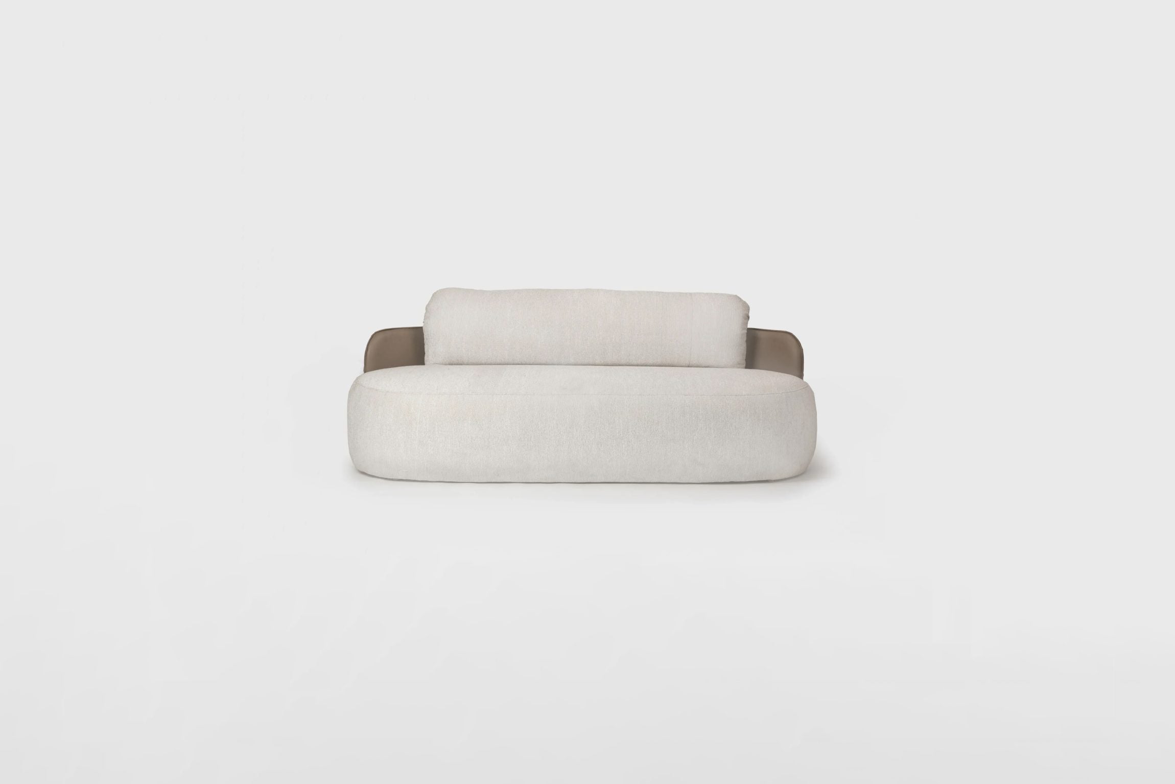 Info: The Fusion Sofa brings together a plush cotton fabric seat with a structured faux leather back, merging softness with a refined edge. Its rounded silhouette and tailored details create a contemporary form that adapts seamlessly to modern interiors