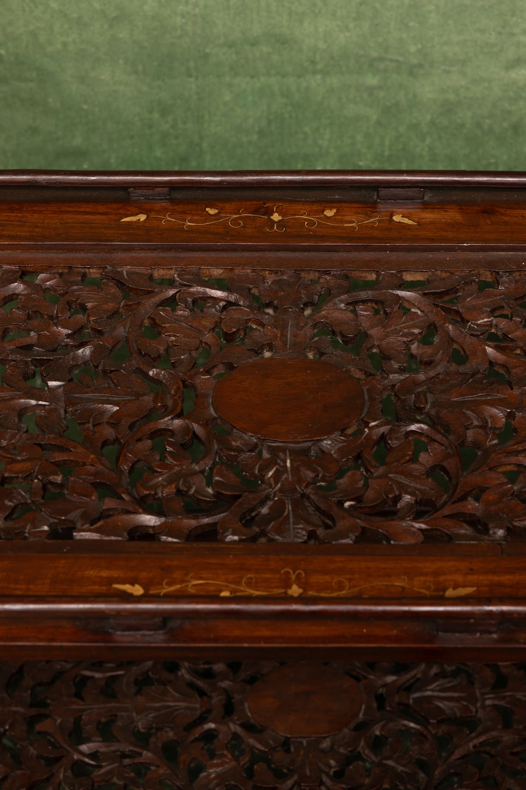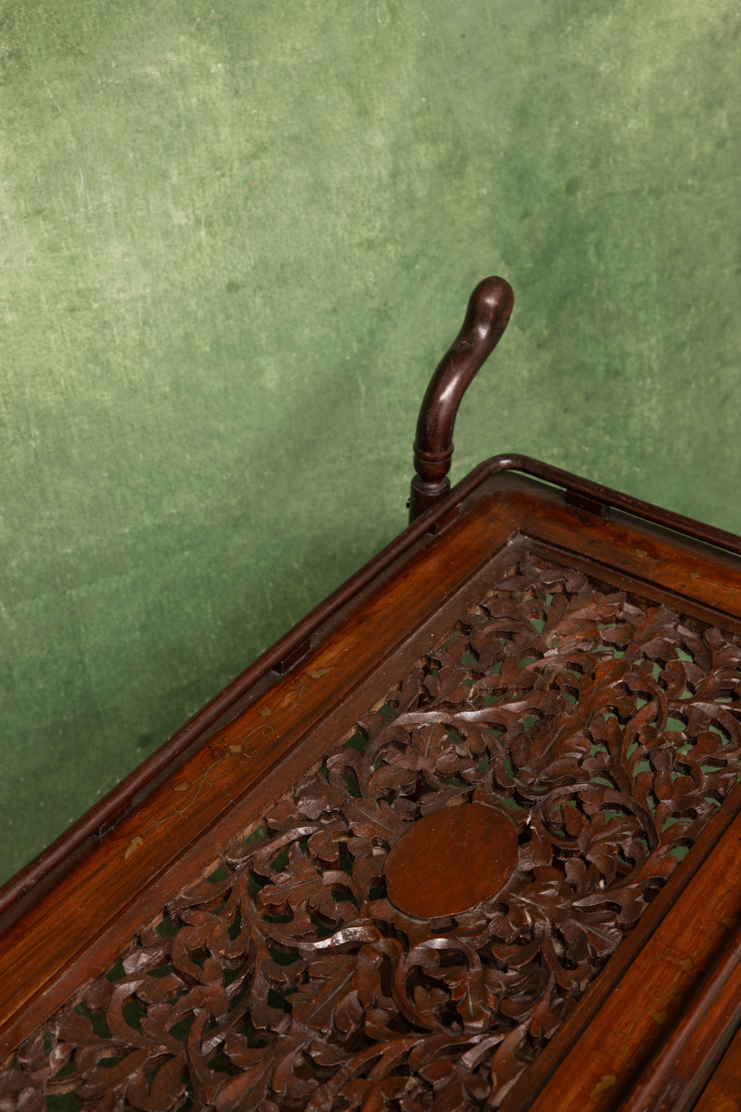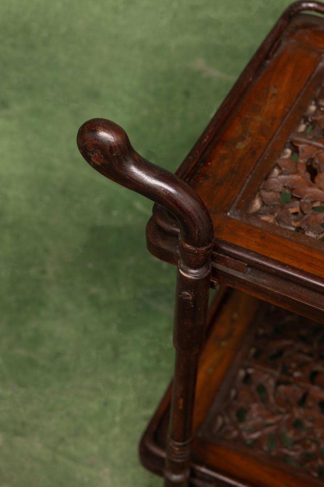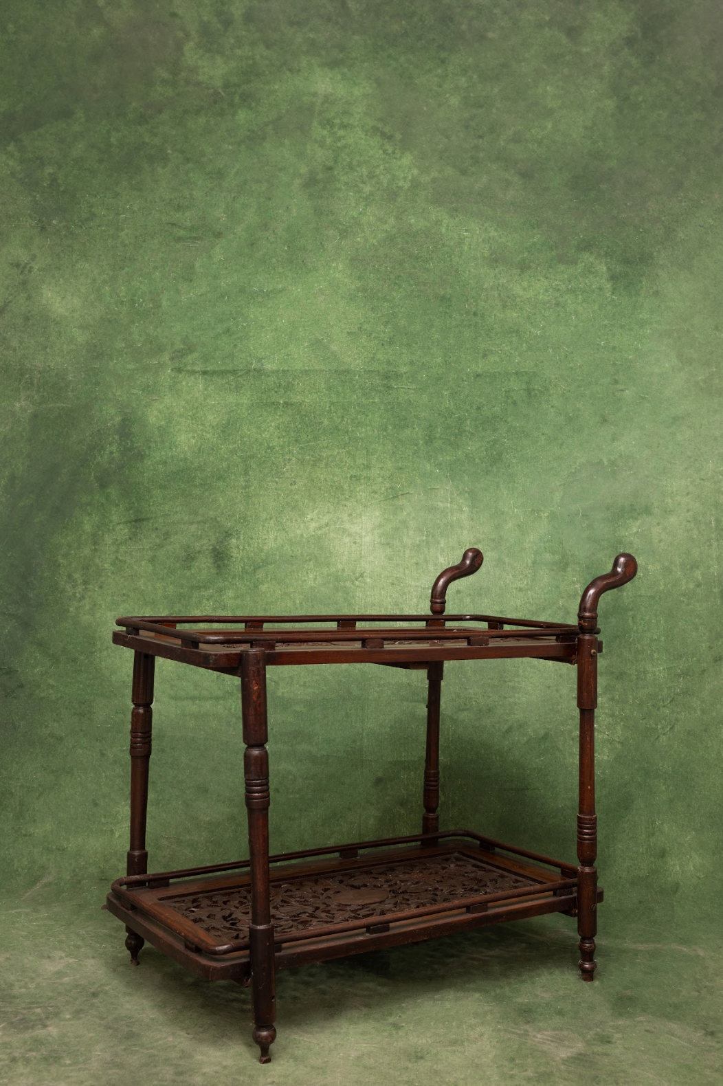 Crafted with timeless elegance, this Mid-Century serving table hails from India. Made of rich hardwood, it features intricate carvings that evoke the spirit of the 1940s to 1960s. A functional work of art for your home.