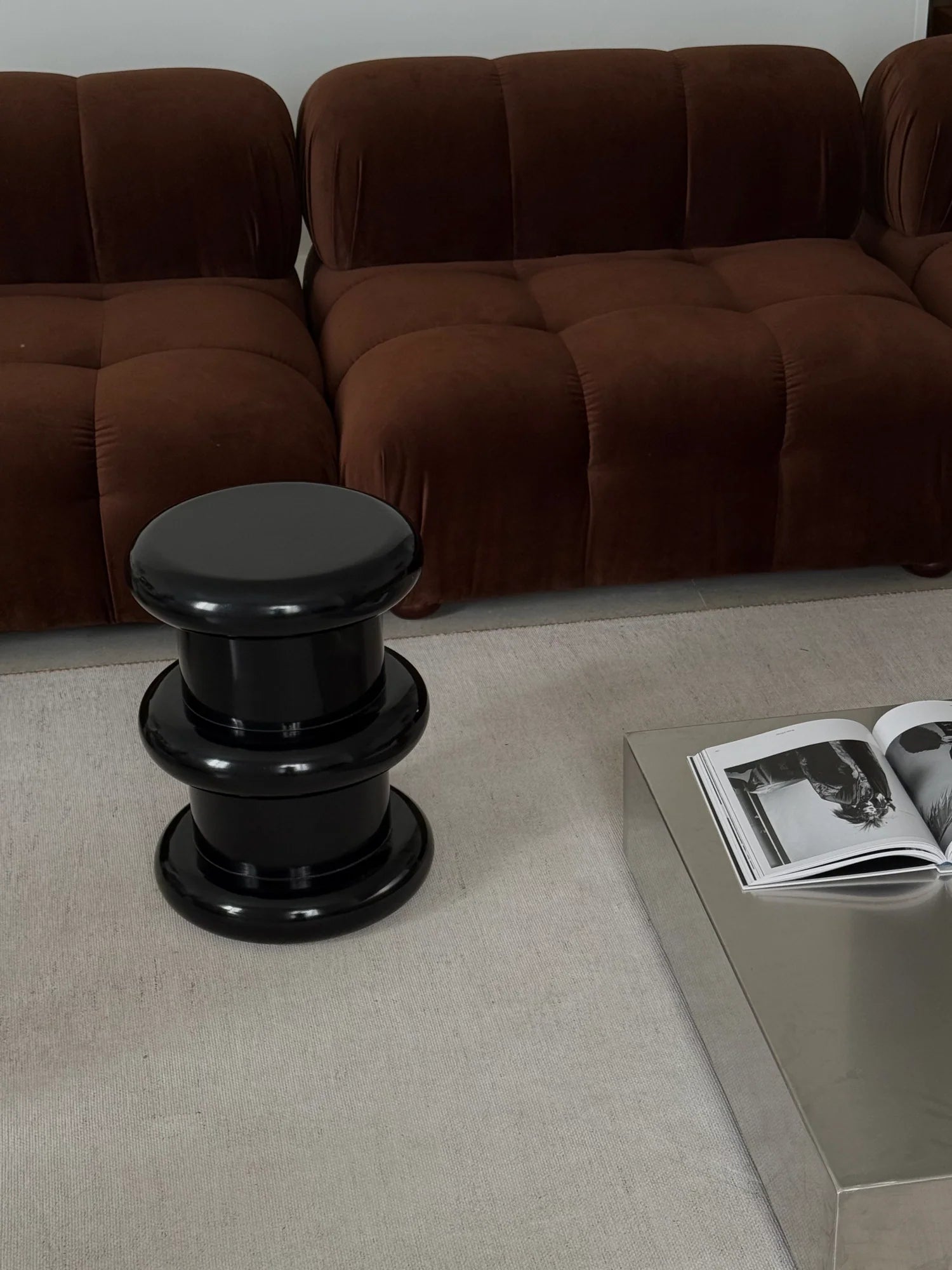 Info: Its bold silhouette, crafted from high-gloss black lacquer, gives it a liquid-like depth-reminiscent of polished jade stone. The stacked, rounded forms create a striking interplay of curves and reflections, making it an instant focal point in any space.