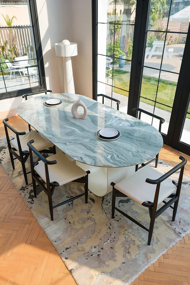 A perfect balance of style and comfort. Crafted from oak wood with a sleek white leather fabric, this dining chair is designed to elevate your dining experience. The chair's modern design and sturdy construction make it a versatile addition to any dining room. Whether used as part of the Mellow Dining Table set or as a standalone piece, the Mellow Dining Chair adds a touch of sophistication to any space.