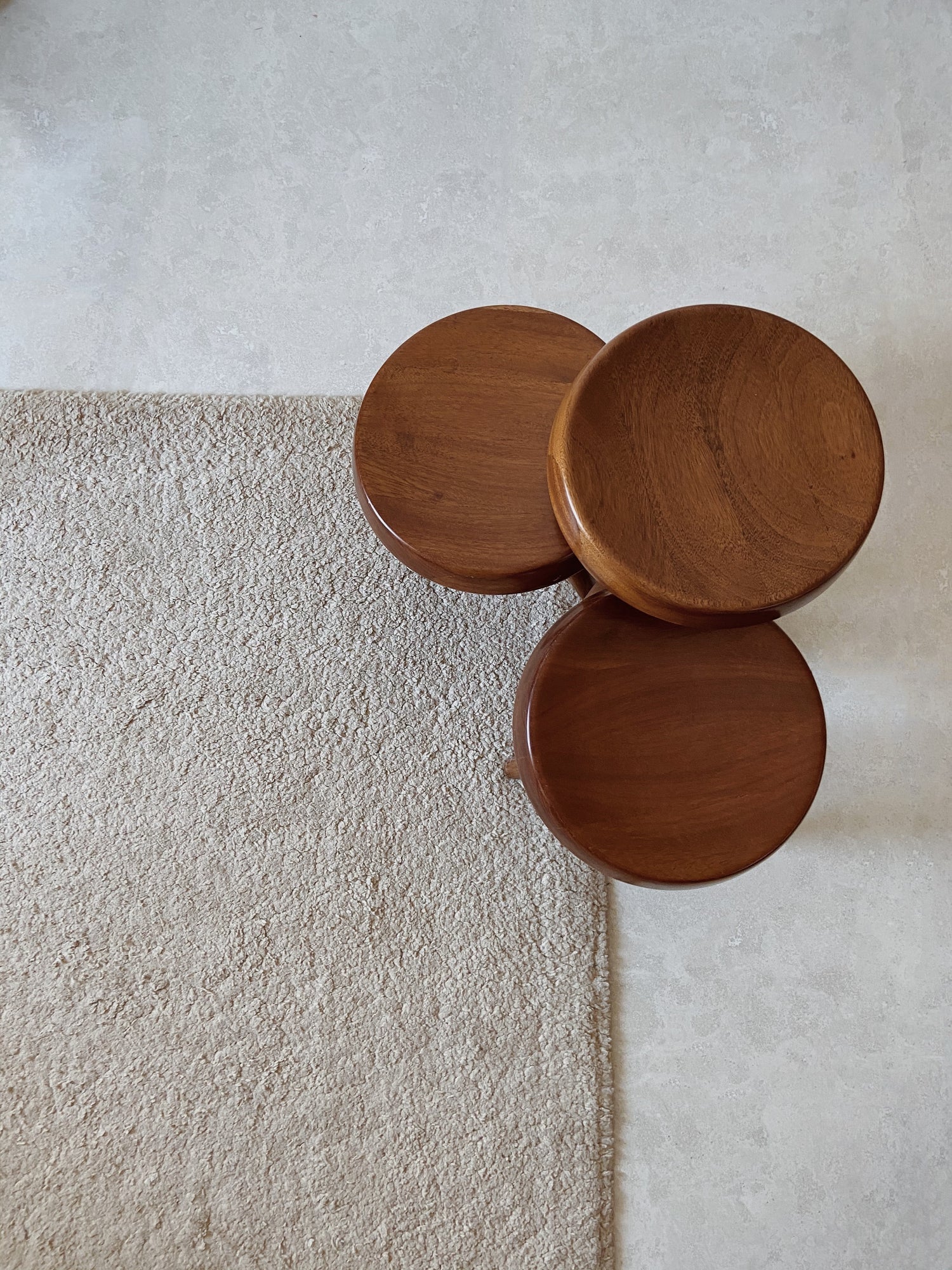 The Meribel Stool, Characterized by three legs “cut” finished, the stool comes in two shapes with different sizes all are handmade from darkened teak.