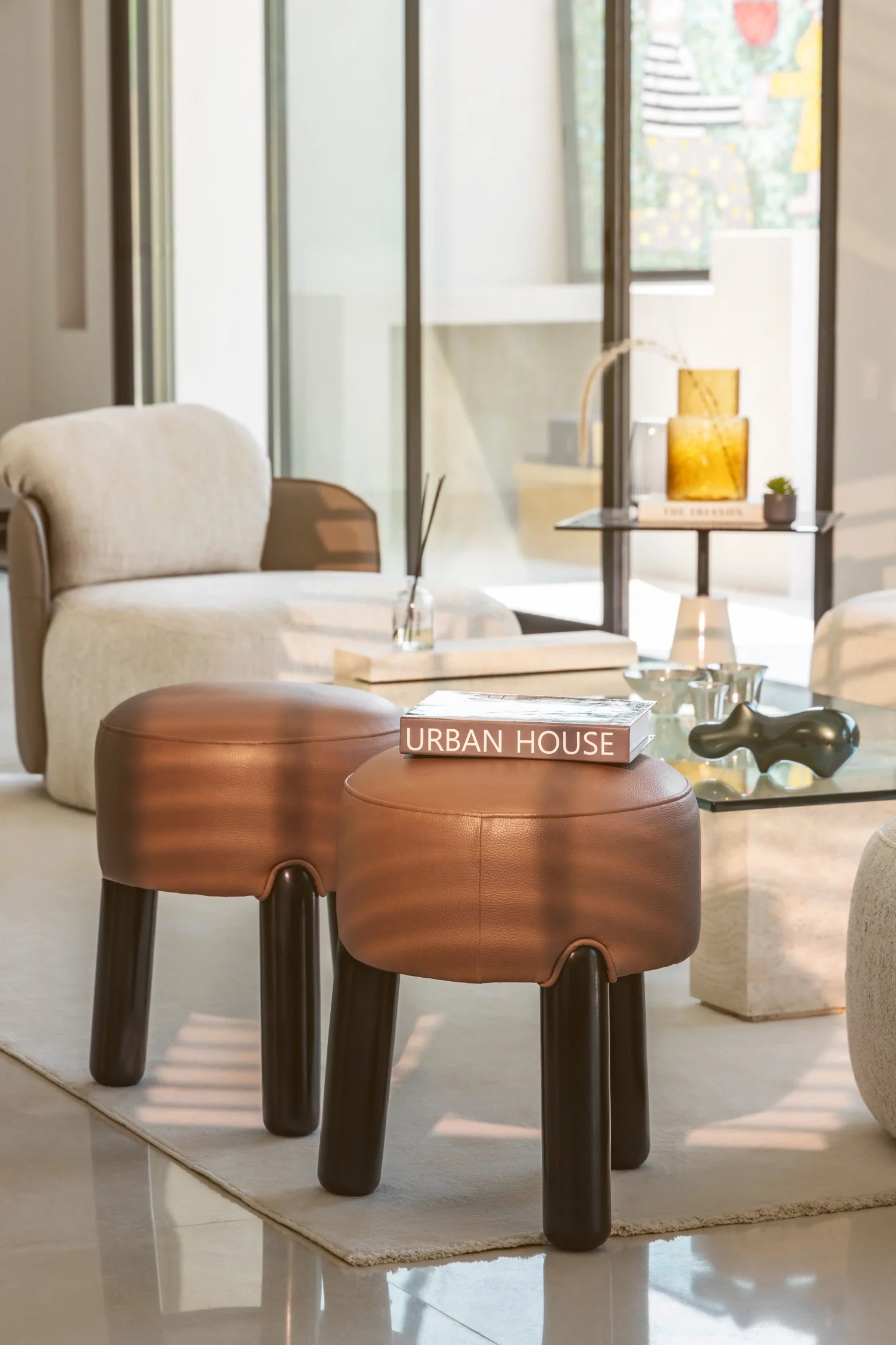 The Nest Pouf pairs a smooth faux leather seat with solid oak legs, creating a compact piece defined by balance and precision. It’s simple form allows it to serve as a versatile accent—whether as seating, a footrest, or a subtle design statement.