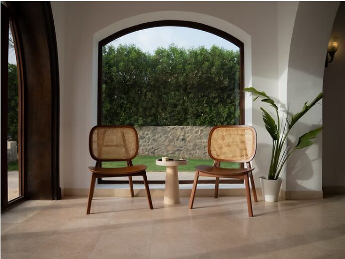 Info: Lend a touch of classy, yet casual character to your seating arrangement with this Nomad Chair. Ideal for both everyday dining and dinner parties, the Nomad Chair features a solid beech wood frame outfitted in this neutral finish. Stylishly juxtaposed with natural woven French cane back, this side chair adds a fashion-forward statement to any modern interior.
