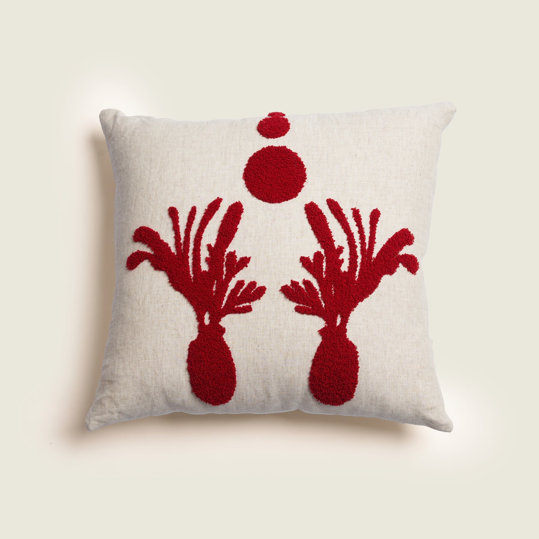 Info: This cozy cushion features a textured design with abstract shapes in a vibrant red, bringing a touch of modern art to your winter decor.
