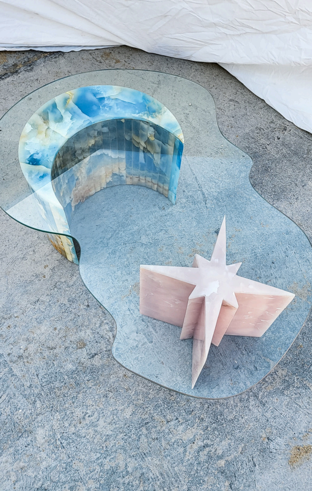 Info: Onyx marble is a unique and captivating natural stone that is prized for its striking appearance and versatility. Formed primarily from calcium carbonate. Onyx marble is characterized by its translucent quality, one of the most appealing aspects of onyx marble is its ability to enhance the ambiance of any space. When used in interior design, onyx marble can serve as a luxurious material, adding a touch of elegance and sophistication. The ONYX.NIGHTS coffee table set has been designed to add elegance & fill the space with luxury of unique marbles
