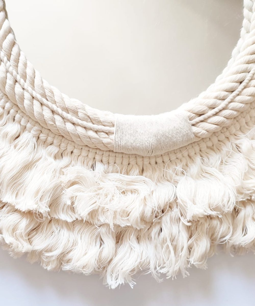 Info: This boho style cotton mirror will give the interiors a very decorative feel, creating a warm and welcoming atmosphere in your home. What makes it unique is that it is handmade with passion for creating beautiful products that can lighten up people’s lives with simple joys.