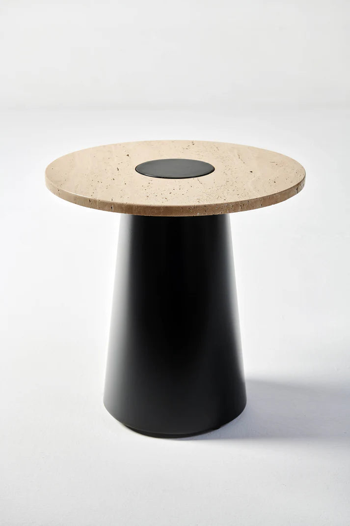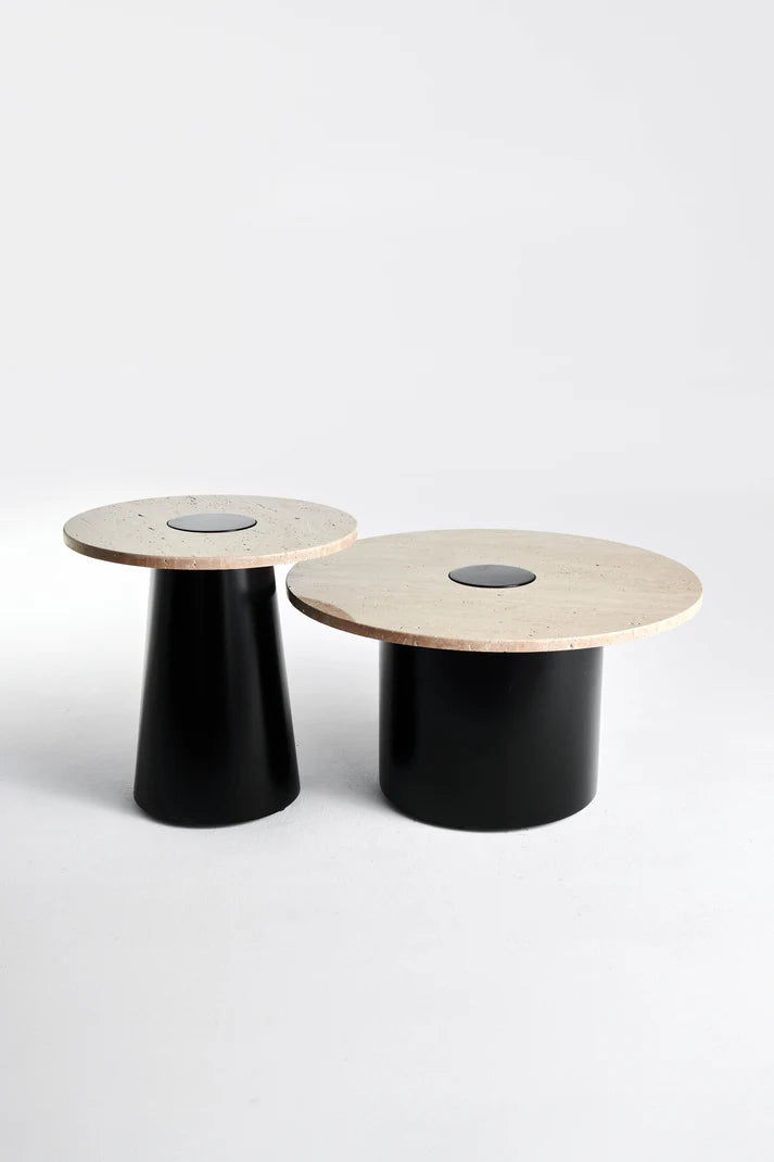 Info: This is a stunning duo of coffee and side tables designed to elevate your living space. Each piece features a luxurious Travertine marble top, boasting an antique texture that adds character and charm, complemented by a striking round void at the center for a unique visual appeal.