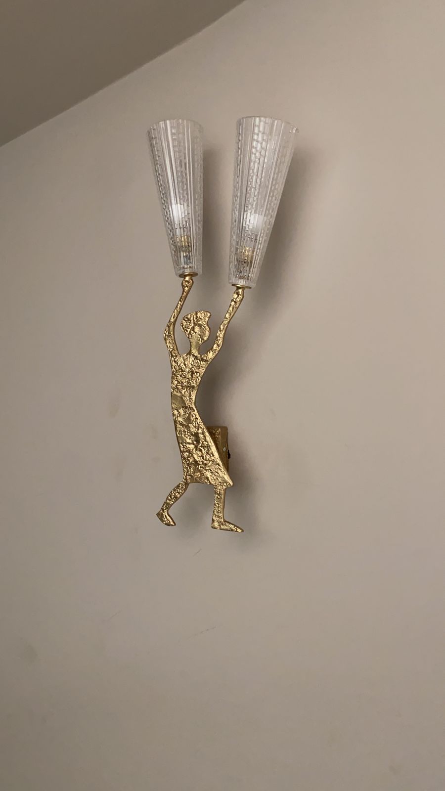 Info: The Wall Light, crafted from brass and glass, offers an elegant touch to any interior space. The Warm, golden hue of the brass provides a sense of classic sophistication, while the glass components allow for the diffusion of light, creating a soft and inviting ambiance. These fixtures often feature intricate detailing and refined designs, making them not just a source of illumination but also a statement piece that elevates the overall aesthetic of a room.