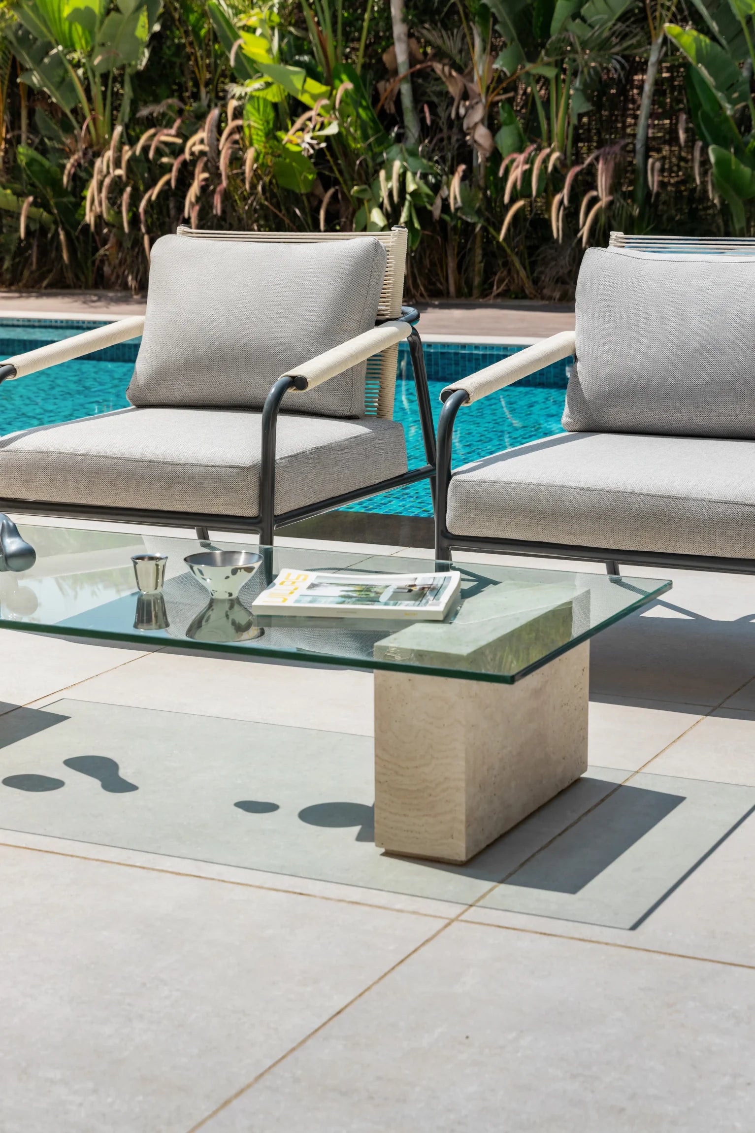 The Vista Chair is crafted with a lightweight aluminum frame, wrapped in handwoven outdoor rope and finished with UV-resistant fabric cushions. Its clean lines and durable materials make it an elegant choice for both open-air settings and indoor relaxation.
