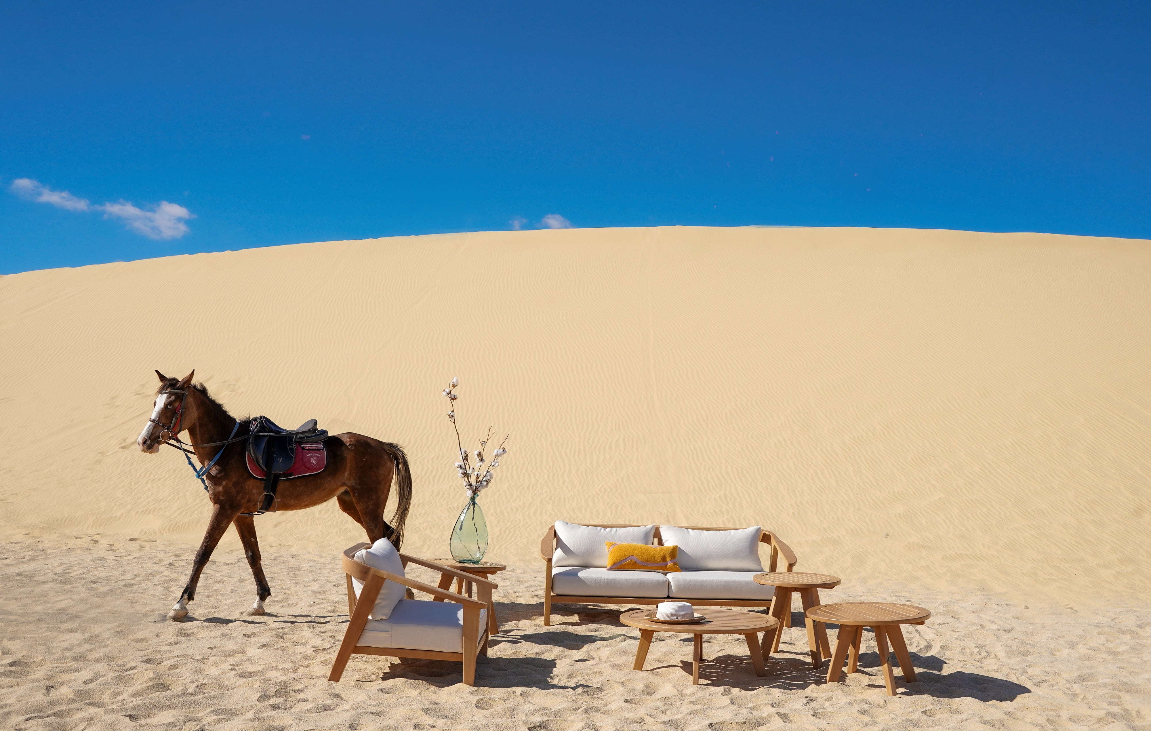 Material: beech wood with off-white cushions